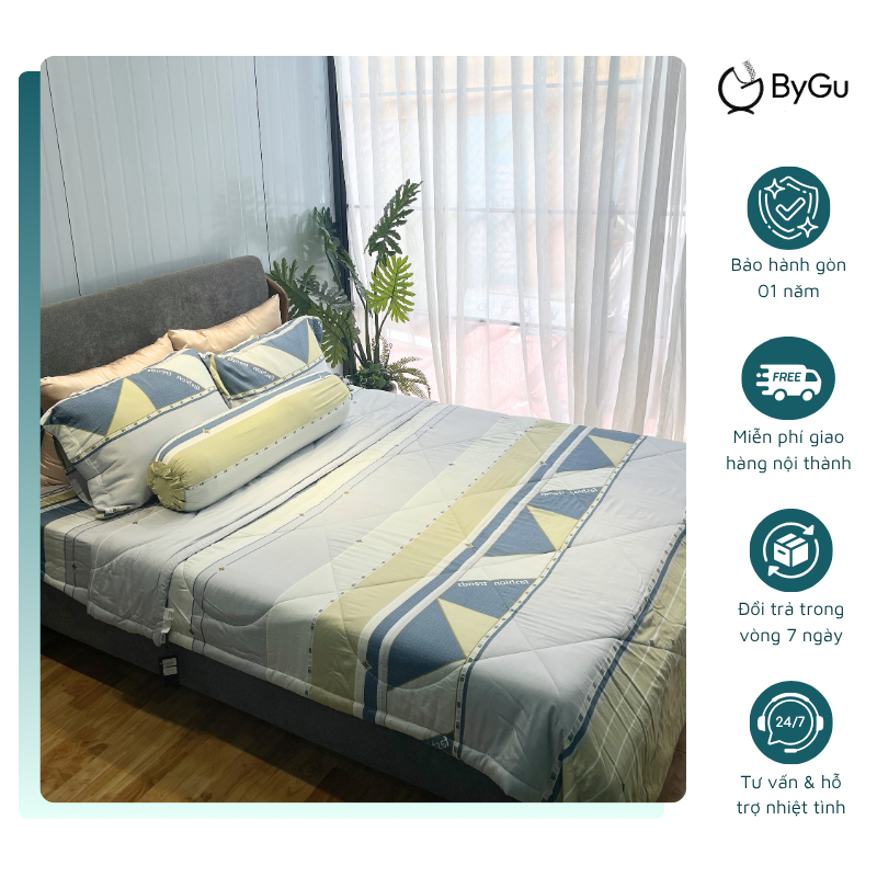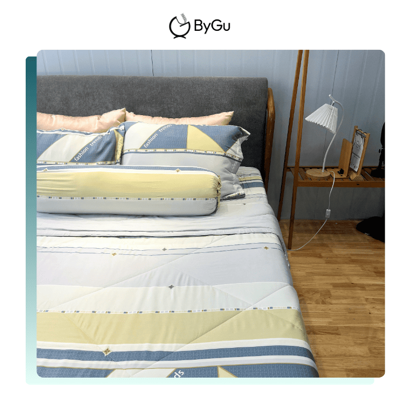 - Chất lượng hoàn thiện: ByGu đảm bảo từng đường kim mũi chỉ trên sản phẩm đều được thực hiện cẩn thận, chắc chắn, góp phần vào độ bền và vẻ đẹp của bộ chăn ga.