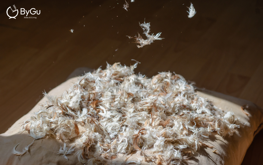 - Sản phẩm ByGu: Ruột gối bông lông vũ nhân tạo của ByGu khắc phục được các nhược điểm của lông vũ tự nhiên, đồng thời vẫn giữ được sự mềm mại, êm ái và thoáng khí. Với công nghệ sản xuất tiên tiến, bông lông vũ nhân tạo của ByGu có độ bền cao, dễ vệ sinh và không gây dị ứng.
