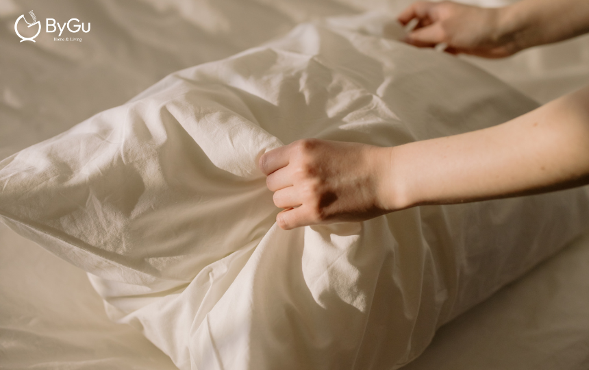 - Lời khuyên từ ByGu: Hãy ưu tiên chọn ruột gối có kích thước lớn hơn vỏ gối một chút để tạo độ phồng và êm ái.