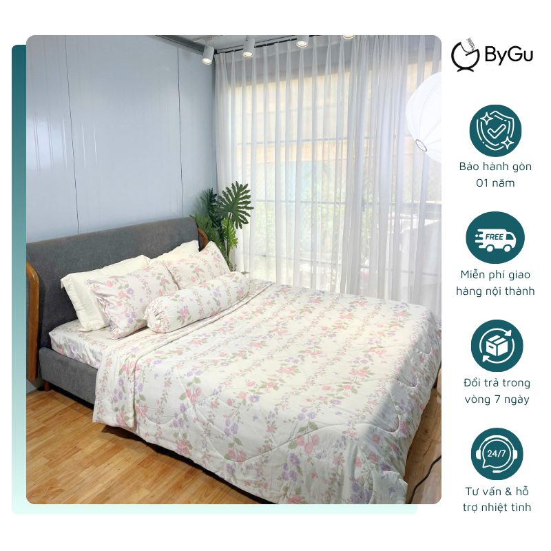 Sản xuất và phân phối trực tiếp, ByGu mang lại mức giá cạnh tranh cho bộ chăn ga gối Tencel hoa pastel Blossom Lane - TCC106. Chúng tôi có chính sách bảo hành gòn 1 đổi 1 trong vòng 1 năm và đổi trả trong 7 ngày nếu có lỗi nhà sản xuất, mang đến sự an tâm tuyệt đối cho khách hàng.