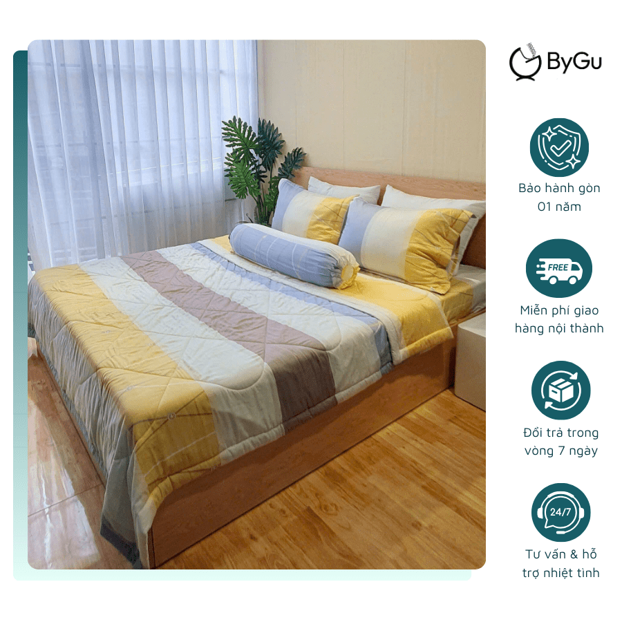 ByGu cung cấp bộ chăn ga gối Tencel họa tiết màu trắng vàng Sunny Harmony - TCD220 với 3 kích thước drap bọc tiêu chuẩn: