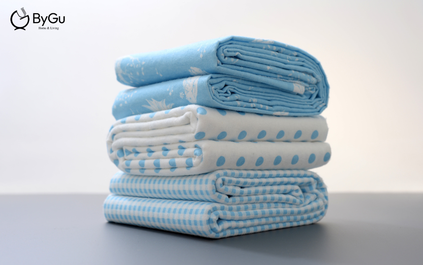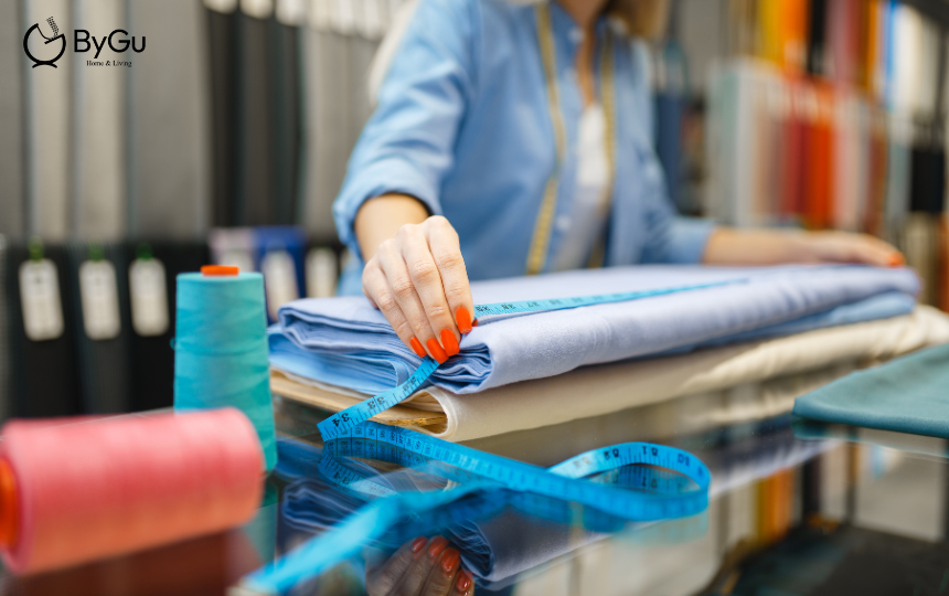 - Vải may ga giường: Đây là "nhân vật chính" trong dự án cách may ga giường của bạn. Hãy lựa chọn chất liệu vải phù hợp với sở thích và nhu cầu sử dụng. ByGu gợi ý bạn nên ưu tiên các loại vải tự nhiên, thoáng mát và mềm mại như cotton, lanh, hoặc đặc biệt là Tencel – chất liệu "vàng" cho giấc ngủ êm ái và làn da nhạy cảm.
