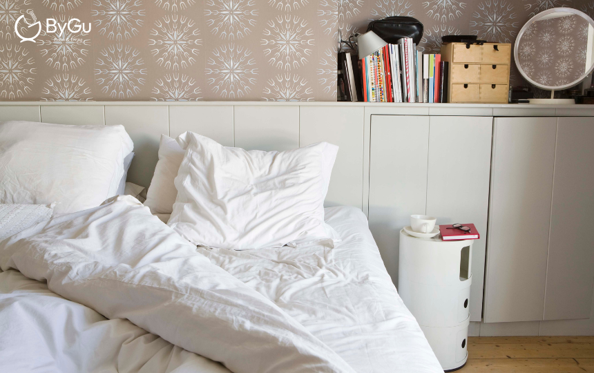 Chiếc giường của bạn là trung tâm của giấc ngủ. Một tấm nệm quá cứng, quá mềm, hoặc đã cũ và ọp ẹp có thể khiến bạn khó chịu và không thể thư giãn hoàn toàn. Hãy đầu tư vào một tấm nệm và gối phù hợp với tư thế ngủ và sở thích cá nhân của bạn. Chất liệu ga trải giường cũng đóng vai trò quan trọng. ByGu tự hào mang đến các sản phẩm chăn ga gối từ chất liệu Tencel. Với bề mặt siêu mềm mại, thoáng khí và khả năng điều hòa thân nhiệt tuyệt vời, Tencel tạo cảm giác dễ chịu ngay khi bạn chạm vào, giúp cơ thể thư thái và dễ dàng chìm vào giấc ngủ. Khả năng thấm hút ẩm vượt trội của Tencel cũng giúp giường ngủ luôn khô ráo, sạch sẽ, hạn chế sự phát triển của vi khuẩn, mang lại một môi trường ngủ trong lành. Ngoài ra, hãy giữ cho không gian phòng ngủ luôn gọn gàng, sạch sẽ và yên tĩnh. Một phòng ngủ bừa bộn có thể gây cảm giác căng thẳng và khó chịu. Chỉ sử dụng phòng ngủ cho mục đích ngủ và quan hệ tình dục, tránh làm việc, xem tivi hay ăn uống trên giường. Điều này giúp não bộ liên kết phòng ngủ với sự thư giãn và nghỉ ngơi.