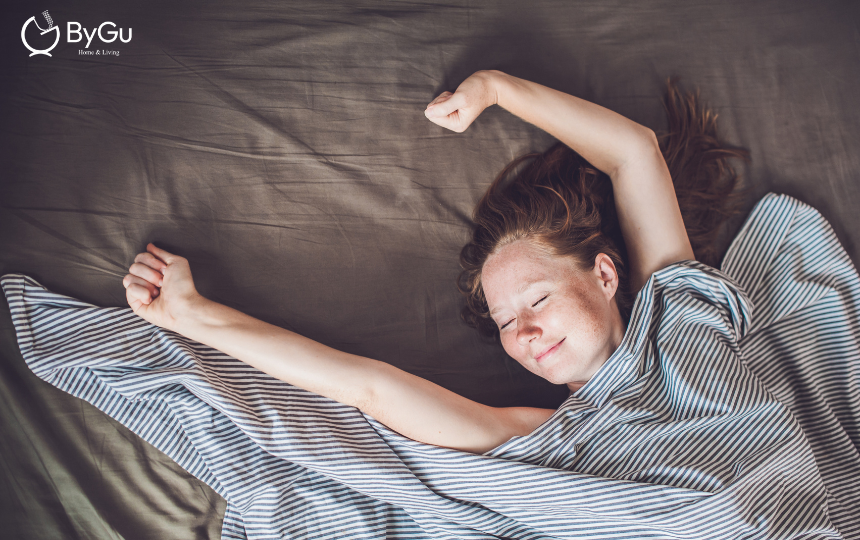 - Đầu tư vào giường ngủ chất lượng: Một chiếc giường thoải mái là yếu tố không thể thiếu. Các sản phẩm chăn ga gối từ chất liệu Tencel của ByGu, với khả năng điều hòa nhiệt độ, thoáng khí và mềm mại, sẽ giúp bạn có một giấc ngủ sâu và không bị gián đoạn, tạo điều kiện tốt nhất để bạn thức dậy sảng khoái vào sáng hôm sau.