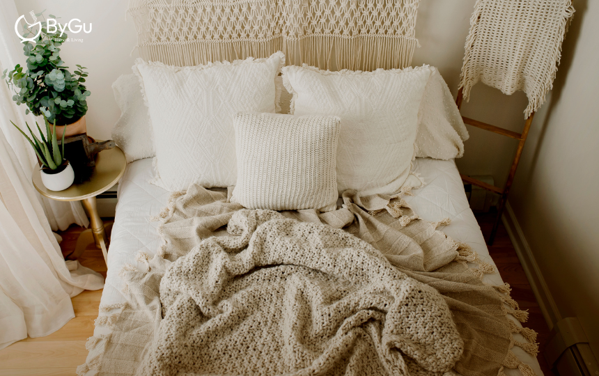 Chất lượng nệm quan trọng không kém chất lượng khung giường. Một tấm nệm tốt không chỉ mang lại sự thoải mái mà còn hỗ trợ tốt cho cột sống, giúp bạn có những giấc ngủ sâu và thức dậy sảng khoái. Bên cạnh đó, bộ chăn ga gối không chỉ là điểm nhấn trang trí mà còn là lớp tiếp xúc trực tiếp với làn da, ảnh hưởng đến cảm giác dễ chịu suốt đêm. ByGu hiểu rằng, việc đầu tư vào những phụ kiện này là đầu tư cho sức khỏe và hạnh phúc của bạn.
